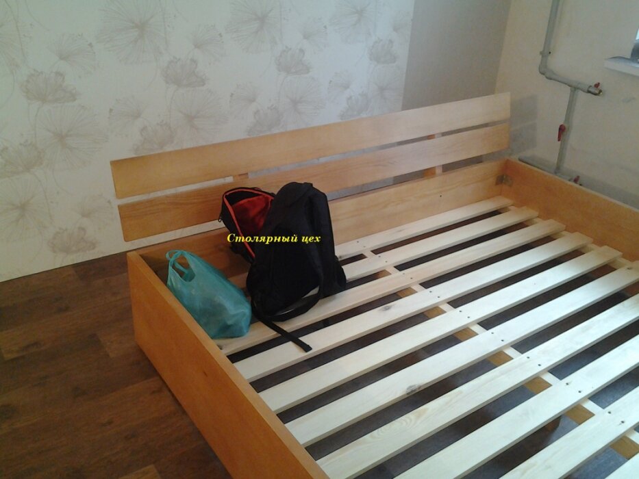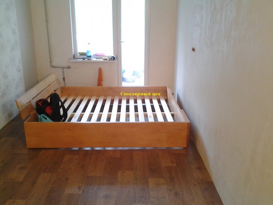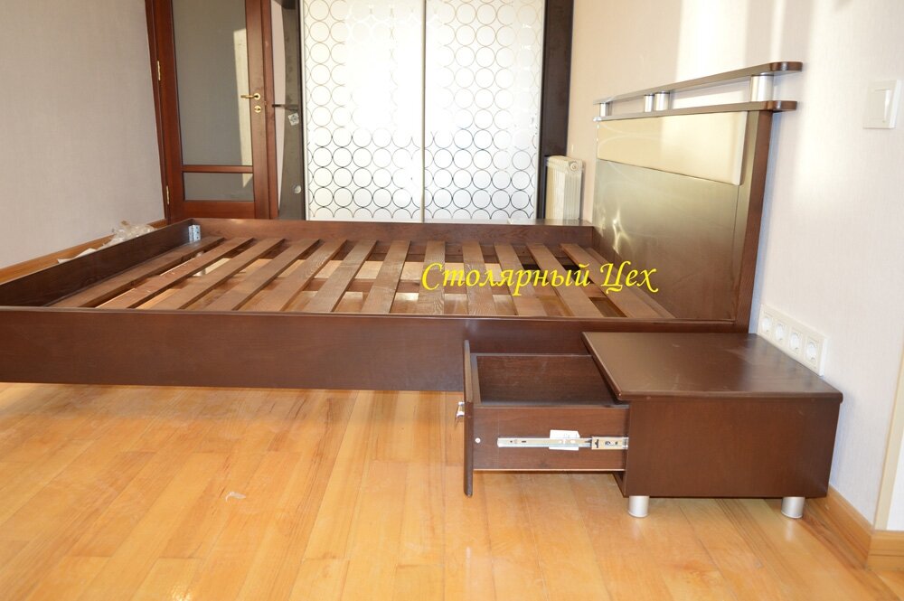 кровать из натурального дерева сосна. размеры 2300*1700*320. покраска нитробейц цвет орех-темный. и лак матовый