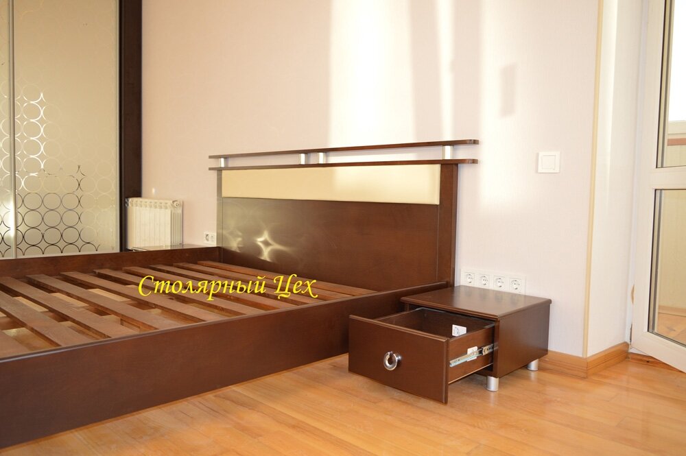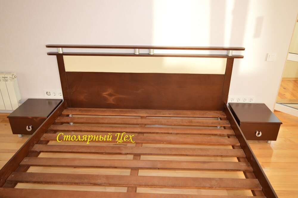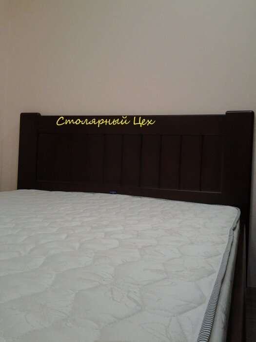 Кровать из натурального дерева сосна. размеры 2100*1660. покраска Орех темный, изголовье из дерева и вставка кож. зам.